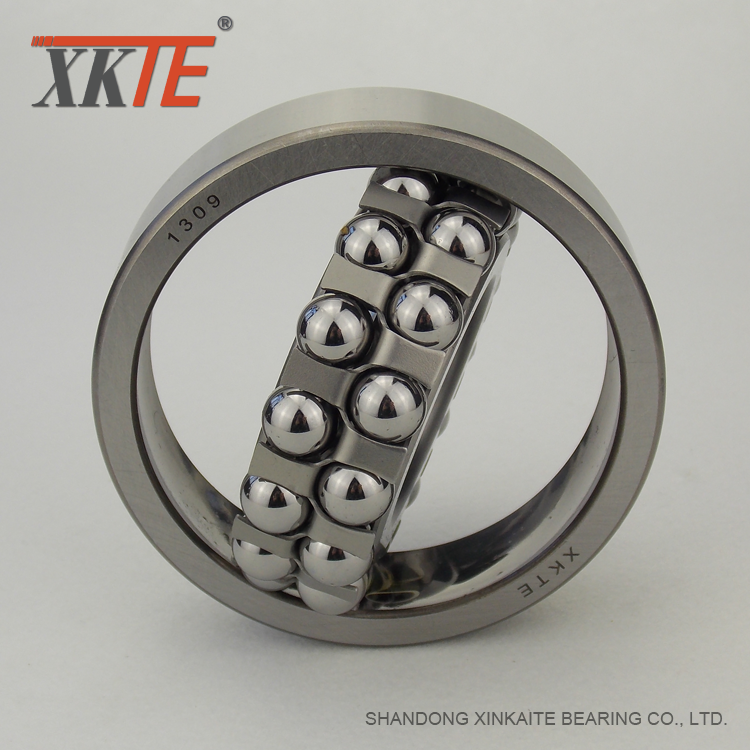 Double Row Self aligning Ball Bearing 1309 is recommended when the alignment of the shaft and housing is difficult or when the shaft may bend during operation. The misalignment and/or shaft bending amount should be considered when specifying bearing type. XKTE Specializes in producing rolling bearing for bulk material handling belt conveyor.